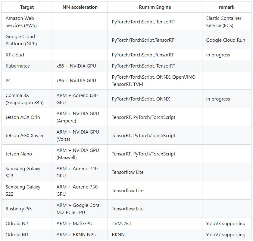 ○ (본 과제 : 다양한 배포환경 지원) 클라우드 서버로부터 쿠버네티스 엣지 환경, PC 및 온디바이스에 이르는 다양한 배포환경 지원
