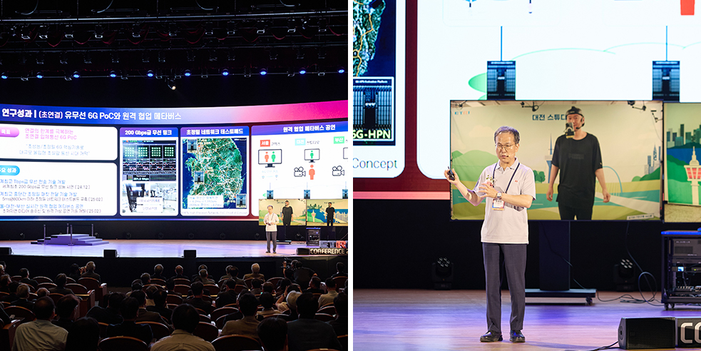 이번에 성공한 200Gbps1) bps(Bits Per Second): 통신 속도의 단위로, 1초간에 송(upload) 또는 수신(download)할 수 있는 비트의 수를 나타냄(초당 기가비트) 무선 시연은 1초에 약 25GB의 데이터를 전송하는 수준으로, 상용화된 5G의 이론상 최대 속도인 20Gbps보다 10배 이상 빠른 속도예요. 단순히 속도를 높인 것이 아니라, 실제 무선 환경에서 이를 구현했다는 점에 의미가 있죠. ETRI가 주관하고, 국내 여러 중소기업과의 공동연구를 통해 이룬 성과예요.