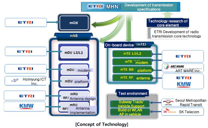 - The technology is a next-generation mobile wireless backhaul technology that supports Gbps-class data transmission rate (to provide communication quality of the level of wired and wireless service of home) in group vehicles(trains, buses, subways, etc.) which board many mobile communication users.