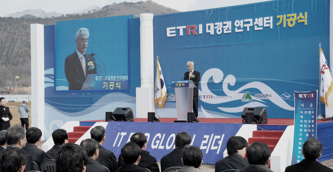 On March 18, 2010, with the aim of integrating and nurturing ETRI’s outstanding information technologies and the major industries in the Daegu region, ETRI held a groundbreaking ceremony to build the Daegu-Gyeongbuk Research Center, an intensive research facility for convergence of R&D efforts in the IT industry.