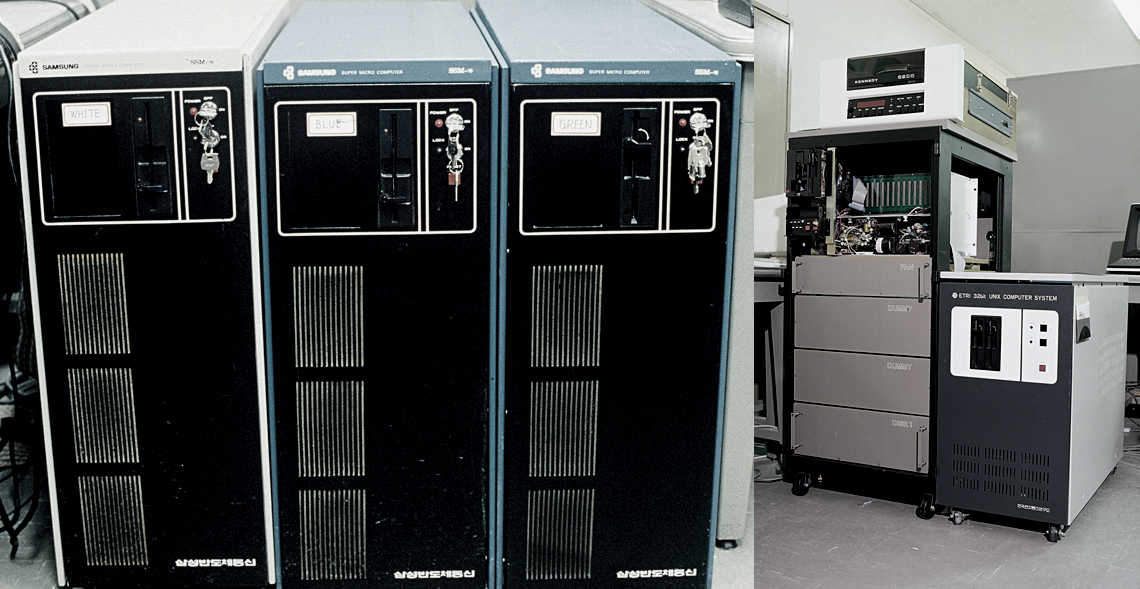 (좌) 8비트 컴퓨터 개발에 성공한 한국전자기술연구소는 1984년 3월 UNIX 기반의 16비트 컴퓨터 개발에 성공했다.