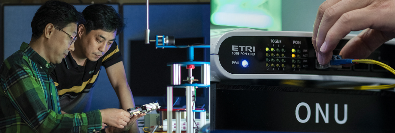 ETRI는 실감형 디지털 라이프 확산을 목표로 언제 어디서나 편리한 네트워크 접속이 이뤄질 수 있는 연구개발을 진행 중이다. 그 결과 ETRI는 모바일 백홀망과 소형 메트로망에서 1초에 200G 데이터를 보낼 수 있는 세계 최소형 크기의 광 트랜시버와 관련 기술을 개발했다. 이로써 데이터 병목현상을 해소하고, 소모전력과 장비 크기도 대폭 줄일 수 있어 초연결 시대를 앞당기는 데 큰 도움이 될 전망이다.