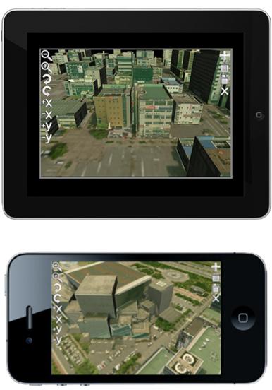 <개요> 실사기반의 3D 도시를 배경으로 실감 있는 3D 비행이 가능한 시뮬레이션 게임 <특징> 인터랙티브 3D 도시 모델링 S/W로 제작한 3D 맵을 적용한 모바일 게임 실사기반의 3D 맵을 바탕으로 게임 플레이 진행 모바일 기기의 터치 및 자이로 센서 사용(iPad, iPhone4) <활용> 3D 실사 기반 게임 및 시뮬레이션 |