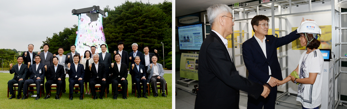 미래창조과학부 최양희 장관은 7월 24일 ETRI를 방문해 창조경제 성과 창출을 위한 연구개발 현황을 점검하고, 연구실 및 실험실을 둘러보고 일선 연구원들의 애로사항을 청취하였다.이날 최 장관은 “미래를 준비하는 출연연의 연구원들은 우리나라 발전을 위한 소중한 자산”이라고 격려하고, “창조경제 실현을 위해 창의적 아이디어와 도전정신으로 연구개발에 힘써달라”고 당부했다.