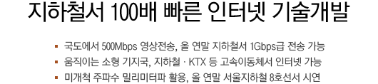 기존 지하철이나 KTX에서는 한꺼번에 수백 또는 수 천명에 달하는 승객이 인터넷을 이용, 기존 와이브로나 LTE 망의 데이터를 와이파이로 변환시키는 방식으로는 인터넷 활용에 한계가 있어 왔다.