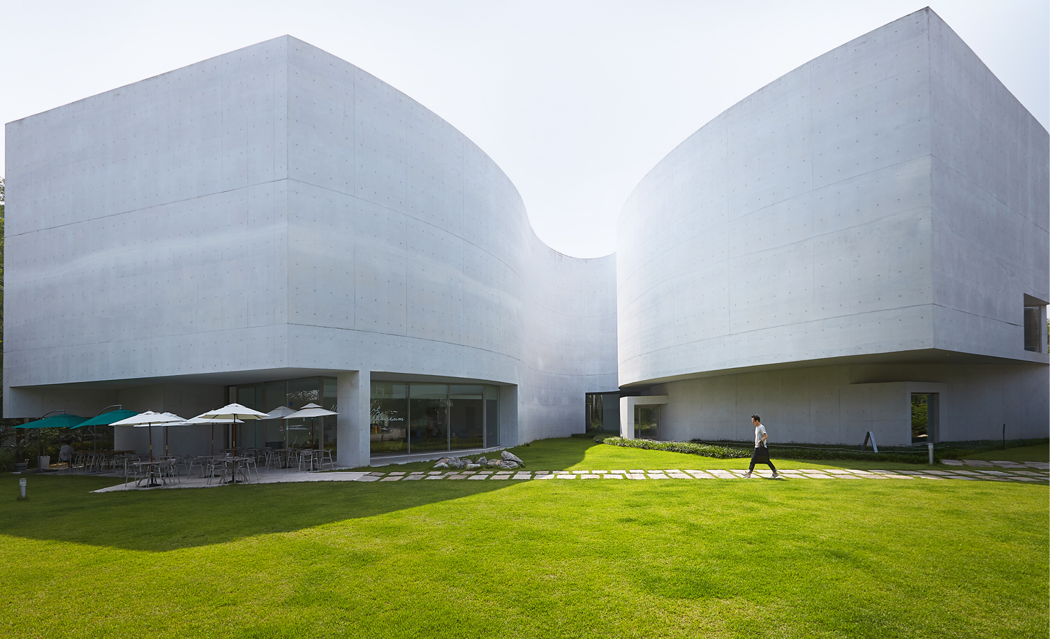 미메시스 아트 뮤지엄의 백미는 웅크린 고양이의 등과 같이 절제된 곡선미와 공간미이다. 하늘과 조화를 이루는 전체적인 곡면은 단순한 건축물이 아닌 하나의 예술작품으로 다가온다. 이 매력적인 거장의 작품 속에서 전시회를 관람하니 눈과 마음이 즐겁다.