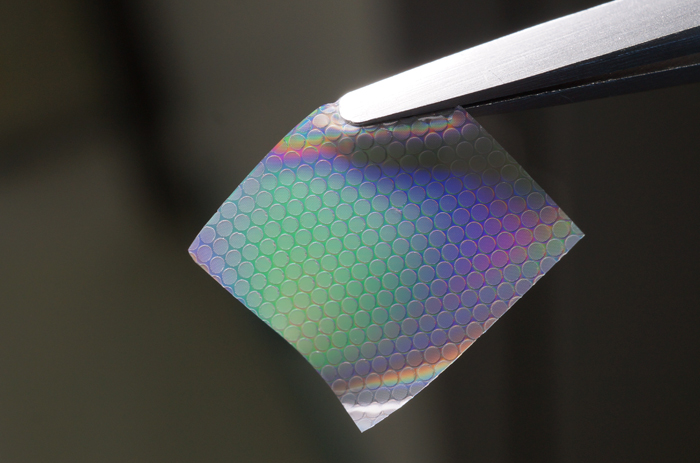 ETRI는 기계 안전성과 우수한 ‘젖음현상’을 동시에 구현하기 위해서 폴리우레탄 아크릴레이트(PUA)라는 고분자 소재를 사용했다. 이를 이용해 임프린트 기반으로 서로 다른 크기를 갖는 구조들이 공존하는 박막을 제작했다.