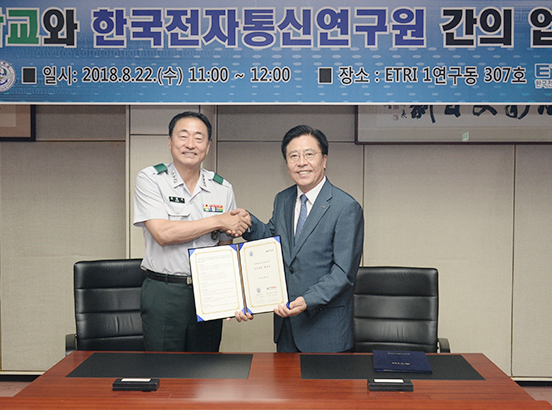 ETRI는 지난 8월 22일(수) 대전 본원에서 국방대학교와 업무협약을 맺었다. 이를 통해 안보전략과 국방과학기술 및 관련 학술, 연구인력 교류, 공동연구를 발맞춰 추진할 예정이다. ETRI는 이번 MOU를 통해 국가 발전에 기여를 목표로 정보통신 분야에 대해 양 기관의 발전을 도모할 예정이다.