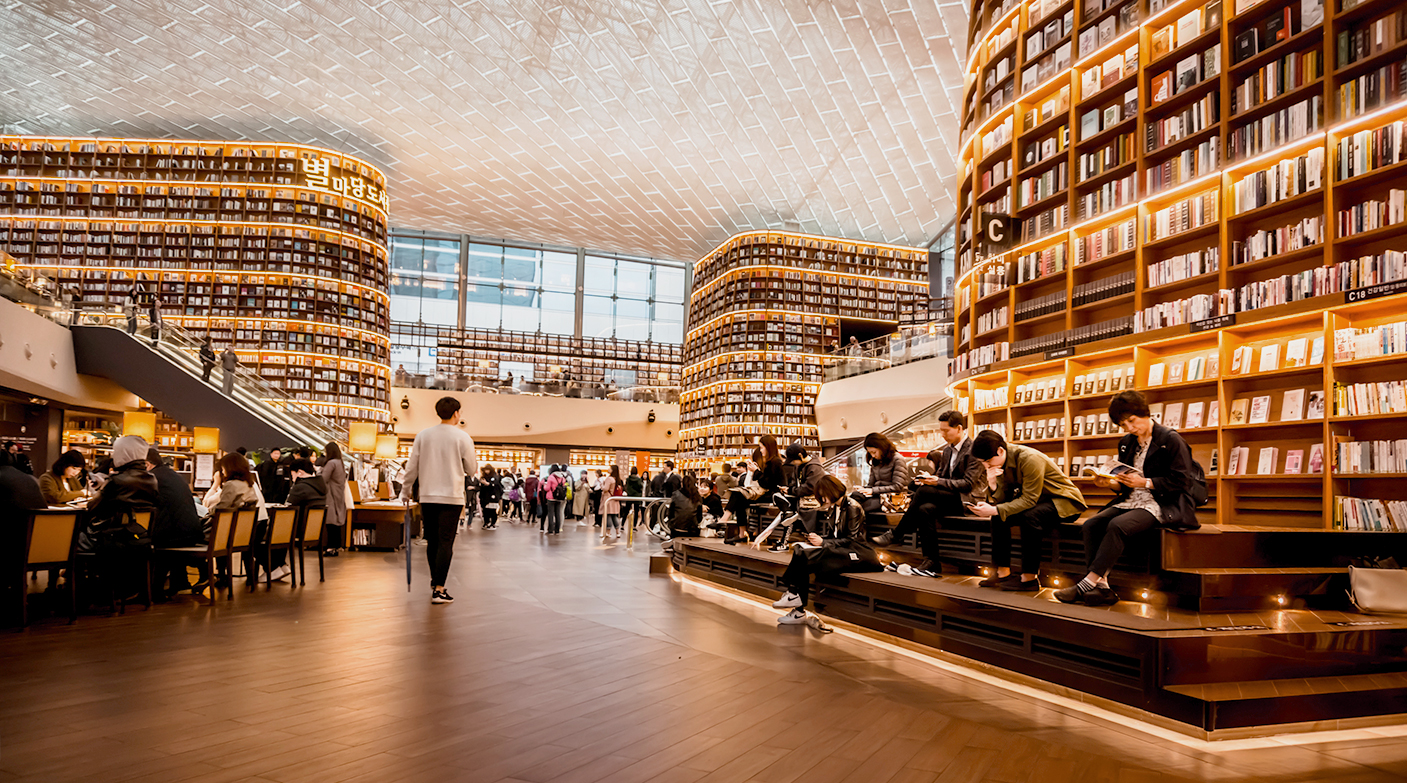 지난 2017년 5월 코엑스몰 한가운데 대형 도서관이 문을 열었다. 2800m2 넓은 공간에 사방에는 5만여 권의 책을 품은 13m 높이의 대형 서가가 우뚝 서 있다. 은은한 불빛이 공간 전체를 부드럽게 감싸는 편안한 서재를 컨셉으로한 이곳은 다양한 테이블과 노트북 작업이 가능하다. 실사판 빅데이터를 방불케 하는 다양한 지식과 교양이 공존하는 이곳으로 당신을 초대한다.