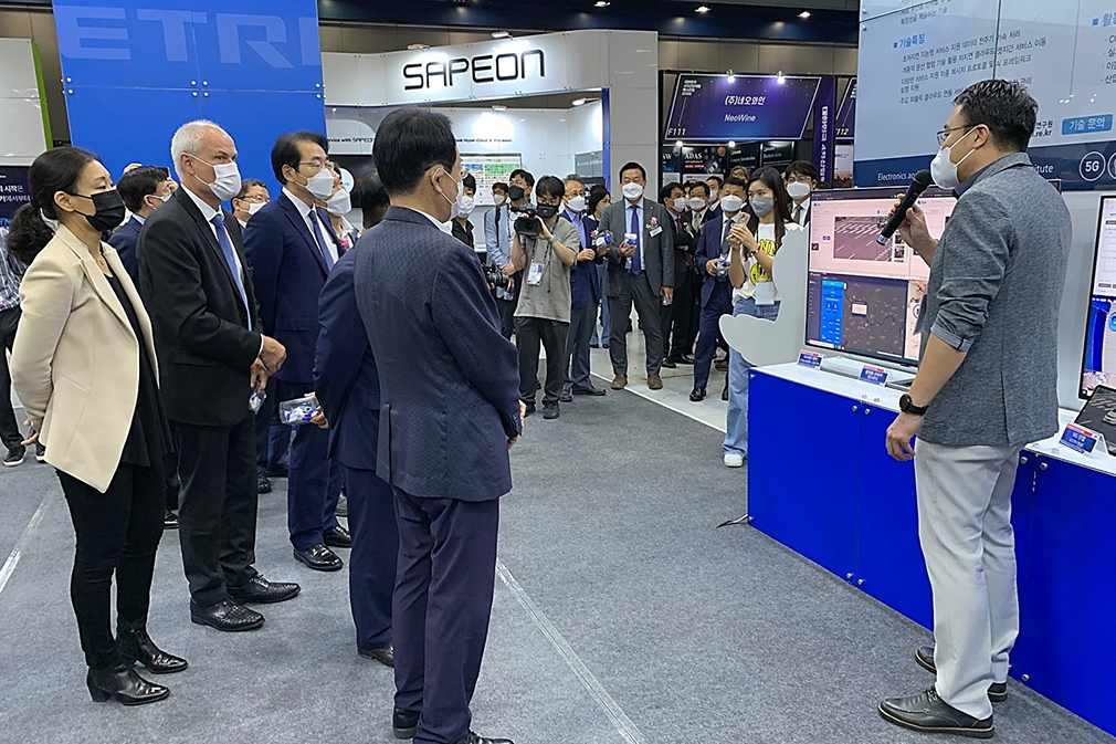 사용자 단말 가까이에서 컴퓨팅 환경을 제공하는 지능형 클라우드 엣지 소프트웨어 플랫폼 기술과 문장만으로 비디오 구간을 검색할 수 있는 AI 기술도 눈길을 끌었다. 영상 검색 기술은 사용자가 문장을 입력하면 영상에서 주어진 문장과 가장 유사한 구간을 찾아주는 기술이다. 유튜브, 넷플릭스 등 스트리밍 서비스와 방송국 데이터베이스, 스마트폰에 저장된 개인 비디오에서도 활용 가능하게끔 기술 고도화를 진행하고 있다.