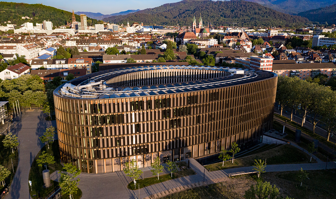 프라이부르크의 신 시청사. 외벽 전체가 태양광발전장치로 덮여 있어 에너지 자립이 가능한 에너지플러스하우스다.