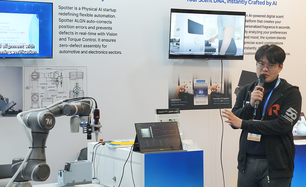 스포터는 CES 2026에 참가해 나사체결 협동로봇 자동화 솔루션‘Spotter ALGN’을 공개했다.