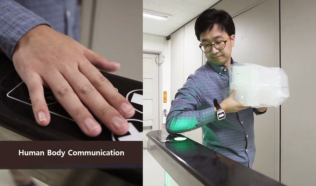 The last technology to be introduced is Human Body Communication technology. This technology is a signal transmission technology that transmits various information, such as personal authentication, payment information, and sensor measurement information, to medium, the human body peripherals.
