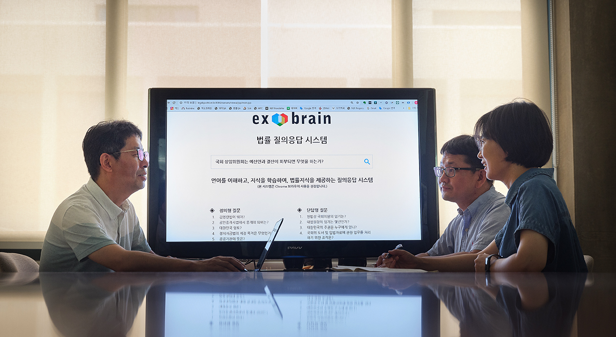 Exobrain is a technology for finding short answers using AI and has proven its excellence by winning a quiz program. AI, the core of Exobrain, is a Korean analysis technology that can analyze the syntax and semantics of a text; a knowledge learning and accumulation technology that can learn and store the knowledge contained in large texts; and a query-response technology that can understand questions structured as sentences and infer correct answers. Exobrain is currently in phase 2 of its development, in which it is expected to be able to answer questions in sentence form and learn specific areas of knowledge. Although at present it must be trained for specific areas, the research team envisages AI answering questions in a wide range of fields based on the accumulated knowledge.